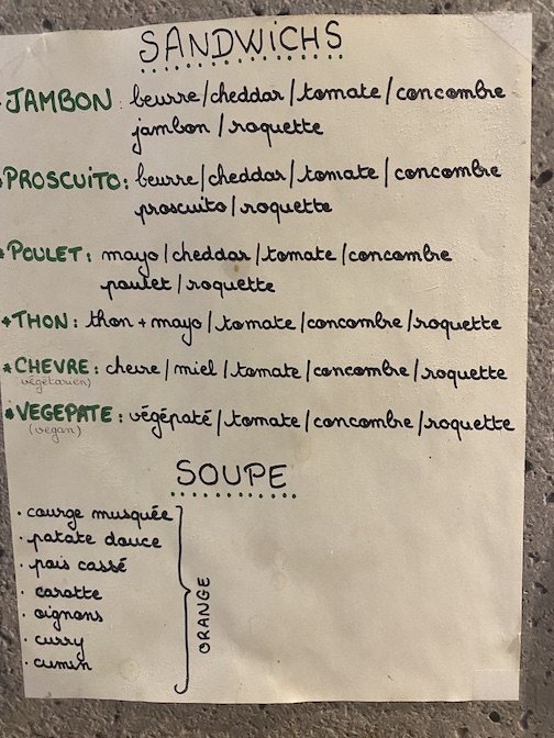 Dans un pain maison (1/2 baguette tradition) : Charcuteries de la BOUCHERIE DU FAUBOURG, fromages de la FROMAGERIE ATWATER, des légumes de l’épicerie VRAC&BIO : du frais et encore du frais !!!!